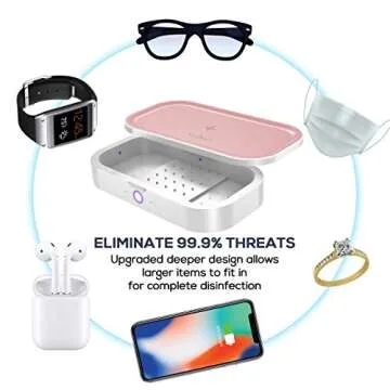 The Wireless Phone Sanitizer utilizes advanced UV light technology to kill 99.9% of germs and bacteria on your phone in just 5 minutes. Imagine the peace of mind knowing that your device is free from harmful pathogens while you go about your day. Not only does it sanitize, but its **wireless charging feature** makes it incredibly convenient — simply place your phone inside, and let it do the rest! While it sanitizes, it also ensures your phone gets charged efficiently.