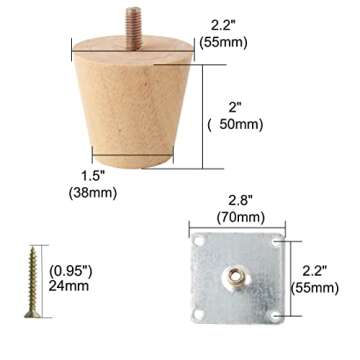 Each leg boasts a neat 2" height, featuring a robust design with a 2.2" top diameter and a 1.5" bottom diameter, making them versatile for various types of furniture including sofas, ottomans, tables, and wardrobes. The included M8 bolts and 16 mounting screws ensure a hassle-free installation process, allowing you to complete your DIY project swiftly and efficiently. Enjoy an uncomplicated assembly experience with all necessary accessories provided in the package!