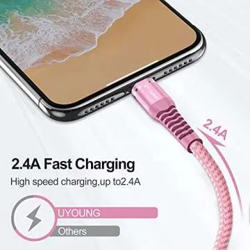 While many charging cords claim to be efficient and durable, the UYOUNG Long Charger Cord surpasses competitors with its 10-foot length and durable nylon braided fabric. Unlike shorter cables that limit your charging options, the UYOUNG provides flexibility that is hard to beat. Additionally, with a fast charging capability of 2.4A, it outperforms many standard cables that often charge slower. Many competitors lack the combination of length, speed, and durability that you find with UYOUNG.