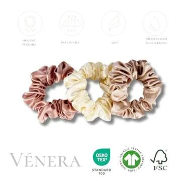 Vénera 100% Pure 22 Momme Mulberry Silk Scrunchies -Frizz&Breakage Prevention-Hair Care Ponytail Holders for Women- Silk Hair Ties (Pink, Cream, Caramel)