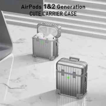 V-MORO Suitcase Case Compatible with AirPods 2nd/1st Generation, Cute Fashion Protective Hard Case with Keychain for Women and Men Silver