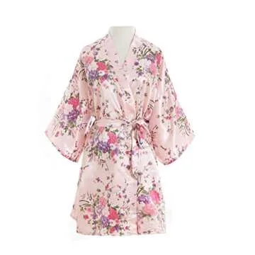 V Vaborous Women's Floral Satin Robes | Short Bridesmaid Robes & Silk Sleepwear