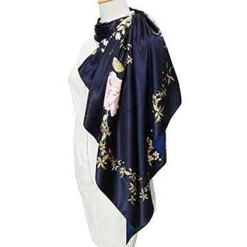 vabovin 35 inches Large Satin Square Silk Feeling Hair Scarf Wrap Headscarf For Women (Navy Blue Peony Flowers)