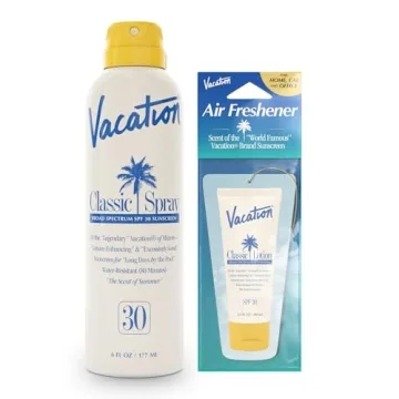 Show moreIntroducing the Vacation Classic Spray Sunscreen SPF 30 + Air Freshener Bundle, the ultimate solution for sun protection that elevates your beach day experience! This exceptional sunscreen spray is designed for those who refuse to compromise on quality while enjoying the sun. With a remarkable blend of high-performing SPF, this product not only shields your skin from harmful UV rays but also envelops you in a delightful aura of vacation vibes. Developed alongside renowned fragrance house ARQUISTE Parfumeur, this sunscreen boasts an award-winning scent that harmoniously combines coconut, banana, and the essence of summer, making every application feel like a mini getaway. Imagine applying this refreshing spray, and instantly being transported to your favorite beach destination! With 6 fl. oz. of blissful protection, you’ll be reaching for this lightweight, non-greasy formula all season long.