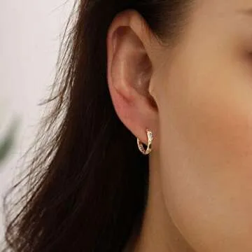 VACRONA Cubic Zirconia Huggie Hoop Earrings for Women - 14k Gold Plated, Lightweight & Elegant