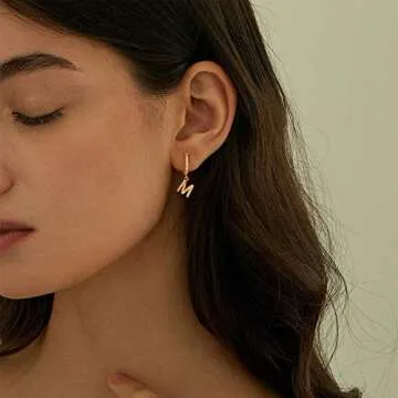 VACRONA Initial Earrings Dainty CZ Huggie Earrings 14K Gold Hoop Earrings Tiny Cubic Zirconia Dangle Earrings Customized Hoops Personalize Earrings For Women Jewelry Gift(M)