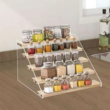 Show moreDiscover the ultimate solution to kitchen clutter with the VAEHOLD Spice Rack Organizer. Designed to offer a harmonious blend of style and functionality, this innovative 5-tier spice rack is ideal for any cooking enthusiast or busy home chef. Constructed from high-quality, transparent acrylic and sturdy wooden boards, this sleek spice organizer not only keeps your spices neatly arranged but also elevates the visual appeal of your countertop. Each level is specifically designed to accommodate a variety of jar sizes, including popular 4 oz square jars, ensuring your seasonings are both accessible and easy to identify. Gone are the days of fumbling through cabinets; with the VAEHOLD spice rack, you can effortlessly reach for your favorite spices without the mess.