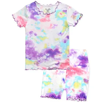 VAENAIT BABY Girls Boys Pajamas Sleepwear Short Summer PJs 2pcs Set Tie-Dye Shirring Vanila Purple