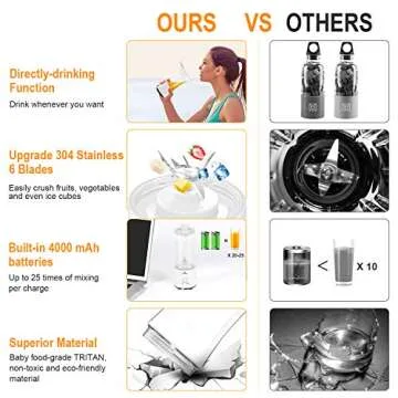 Vaeqozva Portable Blender USB Rechargeable Personal Mixer Fruit Mini Blender for Smoothie, Fruit Juice, Protein Shake, Milk Shakes