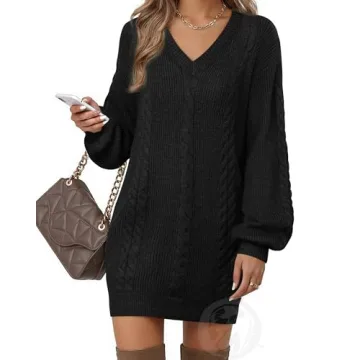VAFOLY Women's Trendy Casual Long Sleeve V Neck Sweater Dress for Fall 2024
