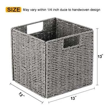 Vagusicc Wicker Storage Baskets, Set of 2 Hand-Woven Storage Baskets for Shelves with Handles, Foldable Cube Storage Baskets Bins Organizer 13 inch Large Wicker Baskets for Pantry Bedroom Decor, Grey