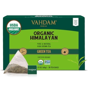 VAHDAM Organic Himalayan Green Tea - Ethically Sourced, High Caffeine, Smooth Flavor, 30 Count