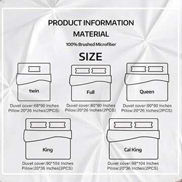 Show more Transform your bedroom into a luxurious oasis with the Vailge 3 Piece Pinch Pleated Duvet Cover Set. Crafted from premium 120gsm microfiber, this duvet cover not only stands out for its durability compared to standard 90gsm options but also features an exquisite pinch pleated design that adds sophistication to your décor. Measuring a generous 104 x 90 inches for the duvet cover and 20 x 36 inches for the accompanying pillow shams, this set is perfect for king-sized beds. Each pleat is meticulously hand-stitched, ensuring not only a stunning aesthetic but also lasting quality. Elevate your sleeping experience with this elegant yet functional bedding ensemble that redefines comfort and luxury.