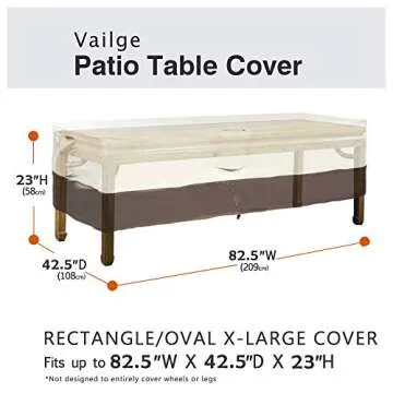 Vailge Veranda Rectangular/Oval Patio Table Cover, Heavy Duty and Waterproof Outdoor Lawn Patio Furniture Covers, X-Large Beige & Brown