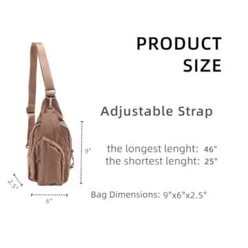 Show moreIntroducing the VAKAER Sling Bag for Women - a versatile and stylish crossbody bag designed to meet all your daily and travel needs. Made from high-quality nylon fabric, this sling bag not only offers durability but also effortlessly wipes clean after use, ensuring it looks good as new after each adventure. With its dimensions of 9.2" length, 6.1" height, and 2.6" width, this bag strikes the perfect balance between compact size and ample storage. Whether you're heading out for a hike, a workout, or a casual day in the city, this small yet functional daypack has got you covered.