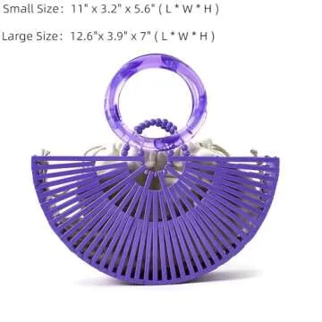 Show moreIntroducing the VAKAER Women Bamboo Purse Summer Beach Tote Bag, an exquisite handmade handbag that redefines elegance and practicality. Crafted from high-quality, eco-friendly bamboo, this striking purple tote is designed to impress. The stunning double acrylic handle provides a unique touch, making it not just a bag, but a statement accessory for the summer. With dimensions of 12.6" x 3.9" x 7", this large-sized purse offers ample space for all your essentials, including makeup, cellphones, lipsticks, glasses, and keys. Experience a blend of style and functionality that is perfect for any summer occasion.