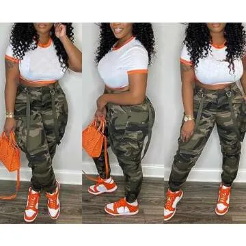 Vakkest Women's Camo Cargo Pants Workout Jogger High Waist Lightweight Hiking Outdoor Stretch Loose Sweatpants with Belt