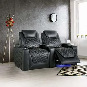 Valencia Oslo Home Theater Seating | Premium Top Grain Italian Nappa 11000 Leather, Power Recliner, Power Headrest, LED Lighting (Row of 2, Black)