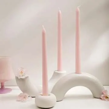 Show more Introducing a world of elegant ambiance with our luxurious, hand-crafted Baby Pink Velvet Rose Scented Taper Candles. These stunning taper candles instantly elevate any setting, perfect for those who appreciate the finer things in life. Measuring at 0.79 inches in diameter and 10 inches long, this exquisite set includes 8 pieces within 2 beautifully packaged packs. Each candle exudes a subtle yet captivating Bulgarian rose scent, providing just the right amount of fragrance to create that perfect romantic atmosphere.