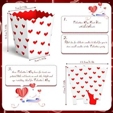 Valentine's Day Conversation Hearts Treat Candy Boxes Valentine's Day Popcorn Boxes Heart Print Dessert Popcorn Cups Party Favors for Valentine Wedding Birthday Party Supply (30 Pieces)