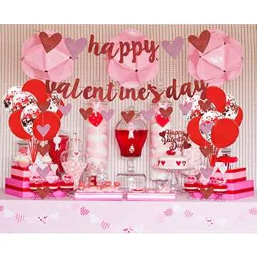 Valentine’s Day Party Decorations with Happy Valentines Day Banner, Valentines Day Cake Topper, Valentines Day Balloon, Valentines Day Garland for Valentines Day Fireplace Decoration Photo Props