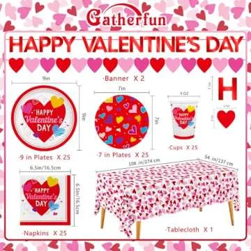 Valentine's Day Party Supplies Set for 25 - Elegant Disposable Paper Plates, Napkins, Cups, Tablecloth & Banner, Valentine's Day Party Decorations