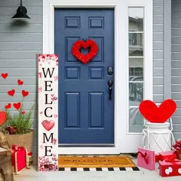 Valentine's Day Porch Sign Valentine Welcome Sign For Front Door Happy Valentine Decor Porch Sign Outdoor Yard Sign Home Indoor Wooden Vertical Sign Wall Sign For Front Patio Garden Porch