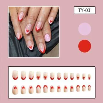 Show moreStep into the season of love with our Valentine's Day Press On Nails, expertly designed for perfection and convenience. This stunning collection features medium oval fake nails adorned with enchanting red and pink love heart designs that symbolize romance and affection. Each set includes a total of 24 full-coverage stick-on nails, meticulously crafted to mimic the beauty of acrylic French tips while ensuring a flawless finish. Enjoy effortless application and an instant glam makeover for any date night or special occasion.