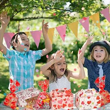 Valentine’s Treat Boxes Gift Bags - 28 Pack Valentines Candy Bags Goodie Bags for Party Supplies, Valentines Day Party Favors for Kids, 7 Patterns Valentines Bags for Wrapped Gifts Party Decorations