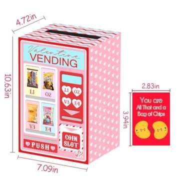 Show moreCelebrate love and creativity with the DIY Valentine Vending Machine Box, an enchanting project perfect for kids eager to partake in Valentine's Day festivities! This delightful kit is a treasure trove of fun, featuring an adorable vending machine mailbox and 25 beautifully designed Valentine cards. Each card features five unique and charming designs that will captivate children and make their exchanges at school truly memorable. Measuring at 7" x 10 3/5" x 4 7/10", this mailbox is perfectly sized for a classroom setting and folds flat for easy storage outside of school hours. Assembly is a snap, taking only a few minutes, allowing kids to dive straight into crafting without tedious setup.