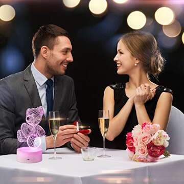 Valentines Day 3D Bear Night Light 16 Colors Change Sleep Lamp Optical Illusion Lamp LED Bear Desk Lamp for Lover Wife Boyfriend Girlfriend, Remote Touch Happy Valentine's Day Gift
