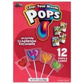 Valentines Day Classroom Exchange Gift | Color Your Mouth Pops 24 Valentine Cards & 24 Lollipops Flavored Candies | Teachers Card | Kids DIY DayCare Sunday School Homeschool Art Projects Part