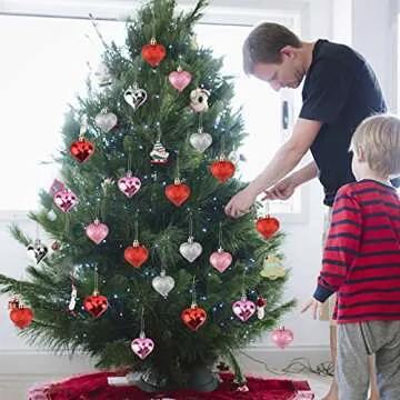 Valentines Day Decor 24 Pieces Heart Shaped Ornaments,Glossy and Glitter Hanging Heart Baubles Valentines Day Decorations for Home Valentine Tree Wedding Anniversary Party(Red,Pink,Sliver)