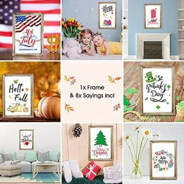 Show moreTransform your home into a cozy seasonal haven with our Valentines Day Decorations Farmhouse Home Decor. This stunning wall decor set features a charming rustic wood picture frame, measuring a sizable 11x16 inches, paired with four reversible prints designed to bring life to every holiday. Each set includes eight lovely design options, allowing you the creativity to effortlessly switch out the sayings to match the season, mood, or occasion. From Christmas cheer to romantic Valentine’s Day sentiments, and even festive Easter vibes, this decor piece is an absolute must-have for those who love to celebrate throughout the year.