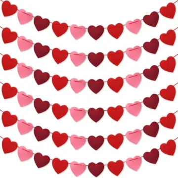 Show moreTransform your Valentine’s celebrations with our beautifully crafted Valentine's Day Decorations. This set features 6 vibrant heart banners, each adorned with 10 charming felt hearts in a delightful assortment of colors: 3 Pink, 3 Wine Red, and 4 Red. With a generous length of 8.2 feet, you can easily hang these delightful garlands anywhere you like. Perfectly pre-strung and easy to set up, these heart banners will add a touch of love and whimsy to your holiday decor without any hassle. Crafted with high-quality felt, these hearts are not only adorable but also durable, ensuring they remain a staple in your decoration stash for years to come.