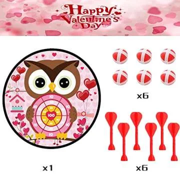 Valentines Day Game Dart Board 26in Owl Dart Board with 6 Sticky Balls and 6 Darts Toy Hooks Valentines Day Party Favors Indoor Outdoor Sports Puzzle Game