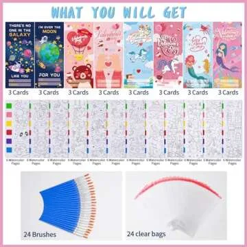 Valentines Day Gifts for Kids 24 Pack Valentines Day Cards with Watercolor Coloring Books for Boys Girls Watercolor Painting Book for Toddlers Valentine School Exchange Gift Classroom Party Favors