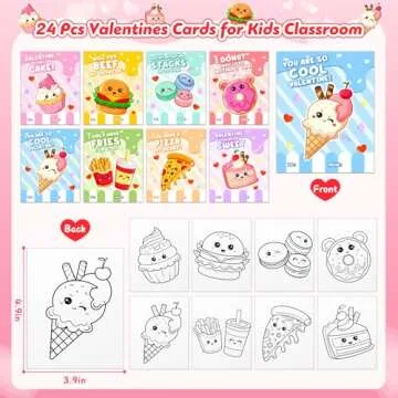 Valentines'Day Gifts for Kids, 24 Packs Heart Watercolor Paint Sets with Dessert Food Painting Cards, Classroom School Exchange Prizes & Art Party Favors for Boys Girls
