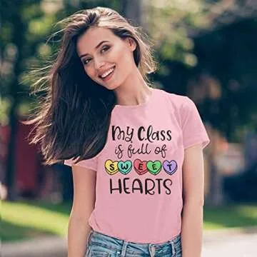 Valentines Day Shirt for Teachers Women My Class is Full of Sweet Hearts Leopard Shirt Casual Short Sleeve Tees Tops