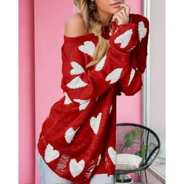 Show moreIntroducing the Valentines Heart Sweater for Women, a charming piece that combines comfort and style with a delightful twist. Crafted from a blend of high-quality acrylic and cotton, this sweater offers exceptional softness and warmth that will leave you wanting to wear it every day. Designed with a ripped hem and a sweet heart knit pattern, this off-shoulder, long-sleeved pullover brings a hint of playful elegance to your wardrobe. Whether you’re dressing up for a romantic dinner or enjoying a cozy day at home, this sweater is sure to turn heads and keep you comfy!