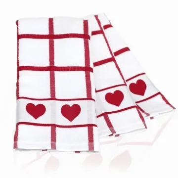 Show more Celebrate love and functionality with our Valentines Kitchen Towels, designed to elevate your kitchen decor while providing exceptional performance. This set of three towels features a vibrant red and white design adorned with an adorable row of solid red hearts, adding a chic touch to your home. Measuring a generous 16x24 inches, these towels effortlessly blend style and practicality, making them an ideal addition to your Valentine's Day celebrations or an amazing gift for loved ones who cherish cooking.