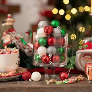 Show moreTransform your holiday decor with the Valery Madelyn 100ct Mini Christmas Ornaments Tree Decorations Set. Designed to elevate your festive celebrations, these exquisite shatterproof ornaments come in vibrant red, green, and white hues that beautifully embody the spirit of the season. At just 1.18 inches in diameter, they are perfectly sized for any Christmas tree and effortlessly versatile for various decorative needs. Crafted from durable materials, these ornaments are built to last year after year, ensuring your holiday decor remains looking pristine and stylish.