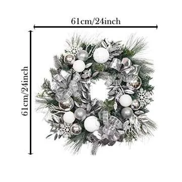 Valery Madelyn Pre-Lit 24" Silver White Artificial Greenery Spruce Front Door Wreath Home Wall Wedding Decor, Balls Included, Battery Operated 20 LED Lights Remote Timer