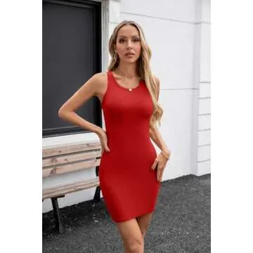 Valiamcep Tank Top Dresses for Women Summer Scoop Neck Sleeveless Ribbed Casual Bodycon Mini Dress Red S