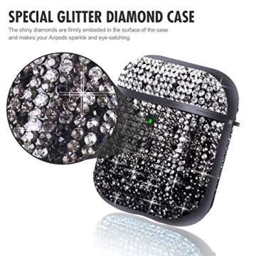 Show more Valkit Compatible AirPods Case is not just an accessory; it’s a statement piece that combines functionality with dazzling style! Designed specifically for Apple AirPods 1 & 2, this exquisite bling glitter case cover is tailored for women and girls who love to add a touch of sparkle to their everyday tech. The black diamond design glimmers with every move, showcasing your personality while providing optimal protection. Each diamond is hand-pasted to ensure it stays secure, making this case not only beautiful but also highly durable.