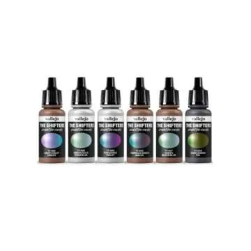 Show moreUnleash Your Creativity with the Vallejo - The Shifters Galaxy Dust set, a revolutionary introduction in the Eccentric Colours series. This exclusive collection features six stunning metallic acrylic airbrush colors, specifically designed for painting fantasy figures and wargames. Each color is infused with multichromatic pigments that shift and change based on light and angle, creating an enchanting visual experience. The pigments' microcrystal-like particles work as refracting prisms, giving your miniatures a radiant, dynamic finish that truly stands out.