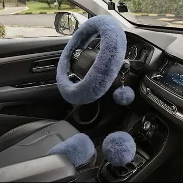 Valleycomfy 4PCS Set Fluffy Steering Wheel Cover with Handbrake Cover & Gear Shift Cover Fuzzy Steering Wheel Cover for Women Plush Car Wheel Cover Universal Fit 15 Inch Gray