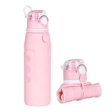 Valourgo 1L Collapsible Water Bottle BPA Free Portable Large Travel Mug Reusable Sports Bottle (35 oz Pink)