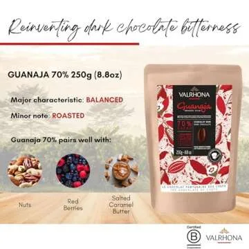 Valrhona Premium French Baking Dark Chocolate Discs (Feves). Classic GUANAJA 70% Cacao. Easy Melt. Easy to chop. Intense & Smooth with Bitter Notes. Sauces, Cakes, Mousses, Frostings 250g (Pack of 1)