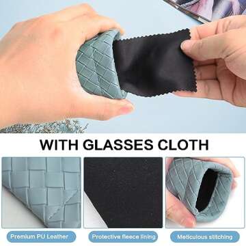 Valuatic Portable Squeeze Top Sunglass Case - Pu Leather Soft Sunglasses Case Easy To Use Eyeglasses Case Pouch 2 Pack (Beige-Black)
